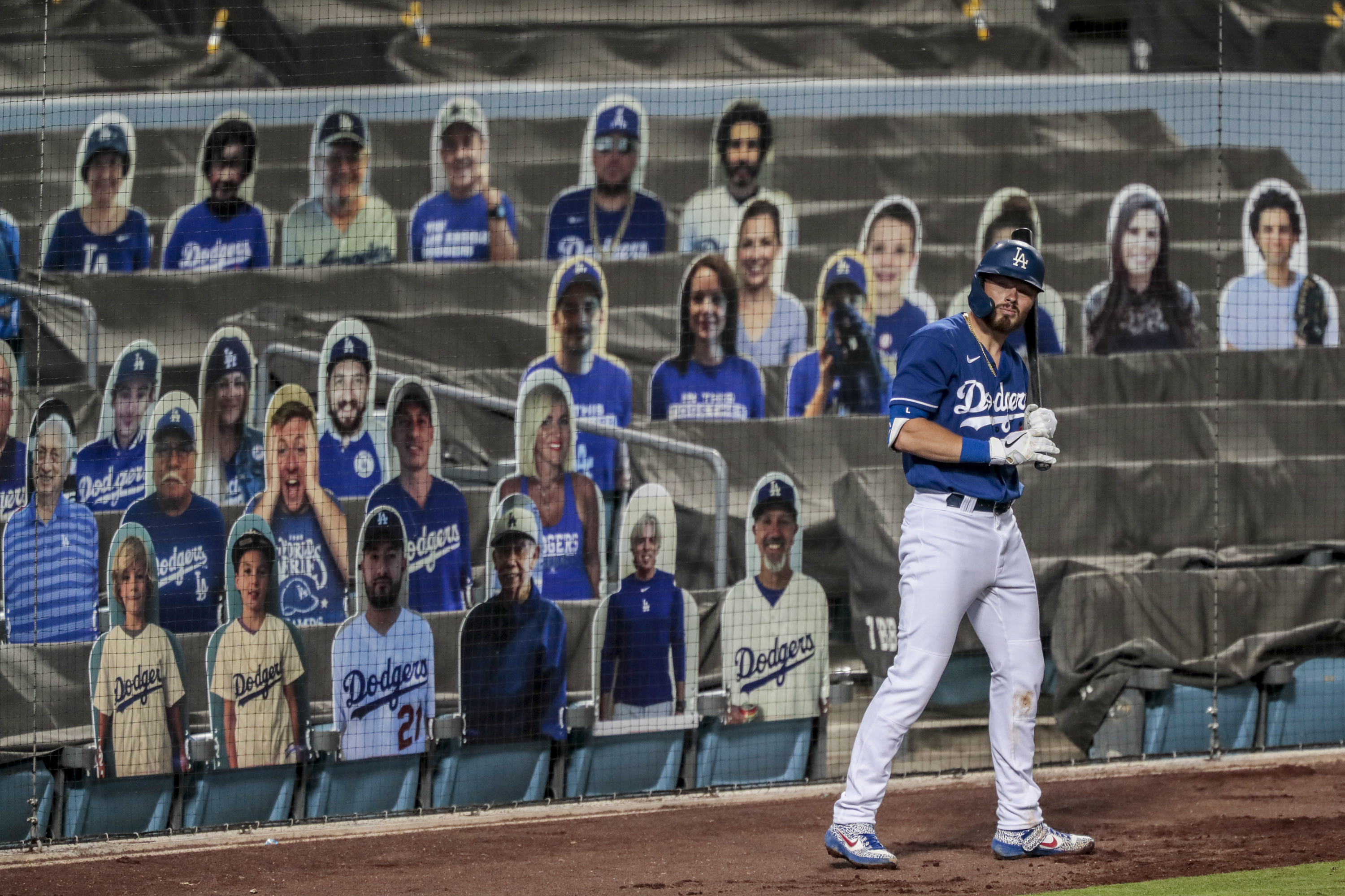 Lastly was the "surrealality" that comes with any miracle. The shaking of the head to make sure your eyes aren't deceiving. The superhuman diving catch of a masked outfielder. (Certainly didn't hamper his performance. ha.) The friendly sharing of hand sanitizer and a good #HaveFaithBe Safe laugh at first base. (Our all time highest viewed post.) The ecstatic faces of the cut-out fans behind home plate at Dodger Stadium - the genius fundraising idea of our good friend Nicole Whiteman at Dodgers Foundation. #BiggerThanBaseball.